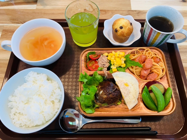 manabu高等学院2号館では、2階の「桜町カフェ」で学食の提供を行っています。 見学・体験で試食していただくこともできます。是非ご利用ください。
